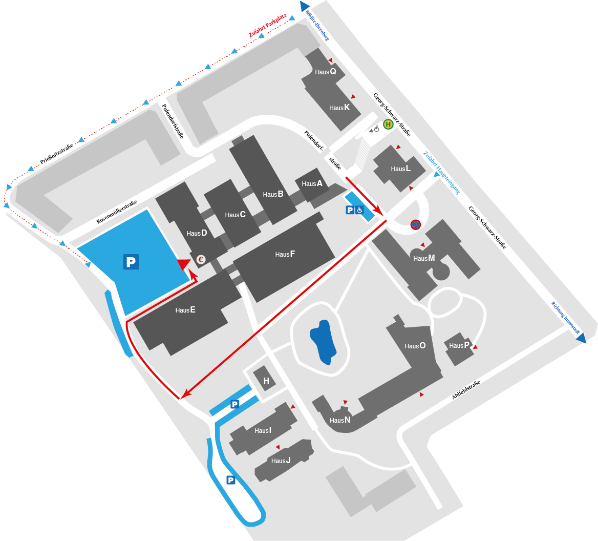 Gebührenpflichtige Parkplätze auf dem Krankenhausgelände ausreichend vorhanden!
